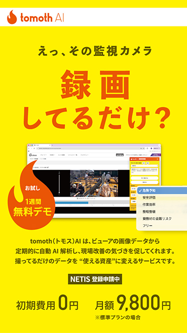 トモスAIレポートから気づきが生まれ、現場の判断をサポートします。 安全意識の向上や新人教育など、様々な活用ができるサービスです。
